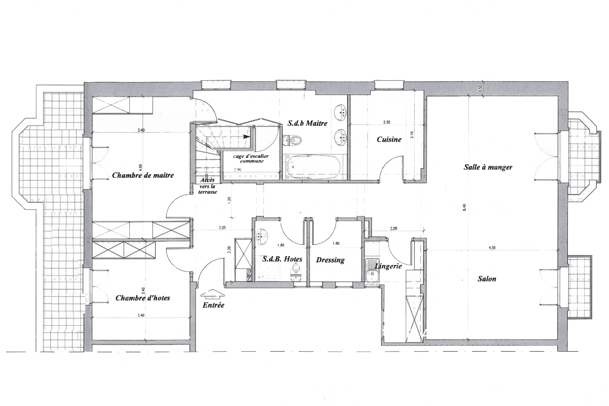 Nestled in an iconic bourgeois building, this stunning duplex penthouse offers 145 m² of living space complemented by 150 m² of terraces. On the first level, an elegant entrance with built-in closets leads to a spacious living and dining area bathed in natural light. These living spaces open onto two balconies with breathtaking views of the Mediterranean Sea. The independent, fully equipped kitchen blends modern design with functionality.