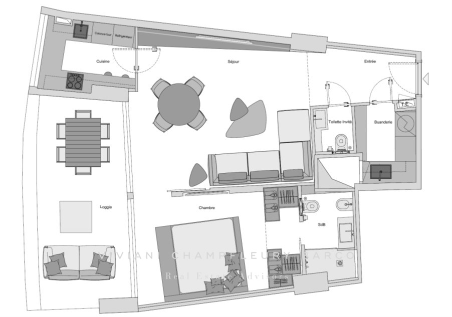 It consists of a spacious living / dining room opening on to a great terrace with seaview, a beautiful master bedroom with walk-in dressing and bathroom.