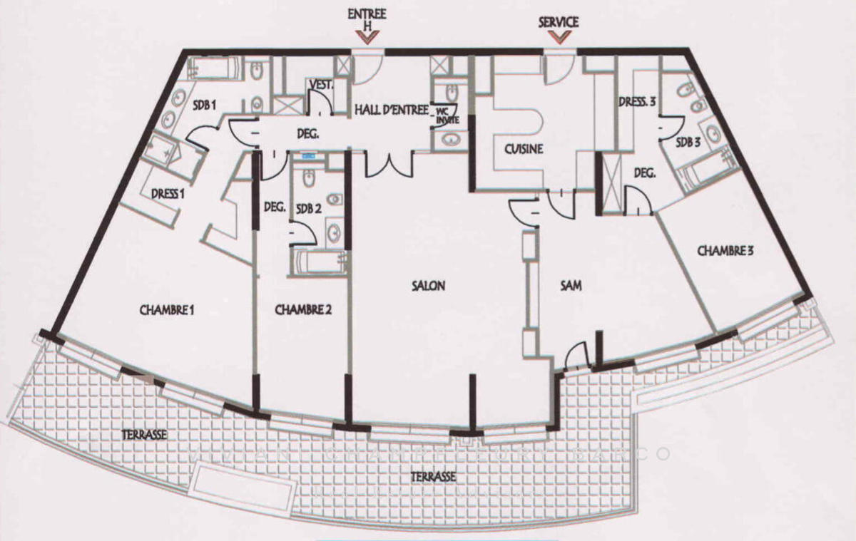 Each room of the apartment opens onto a beautiful terrace offering a magnificent panorama of the Principality and the sea.